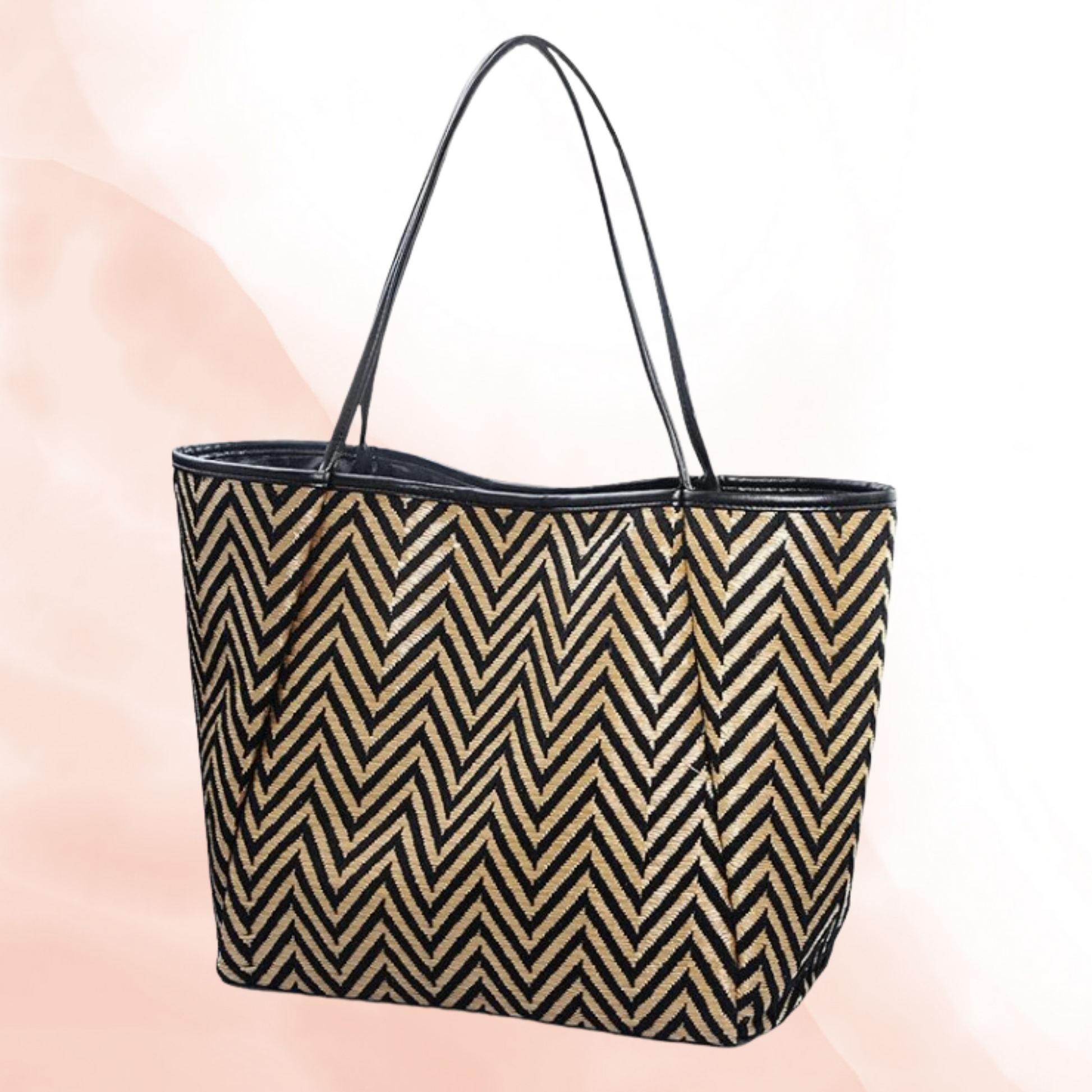 Leather Trim Shopper Tote Bag